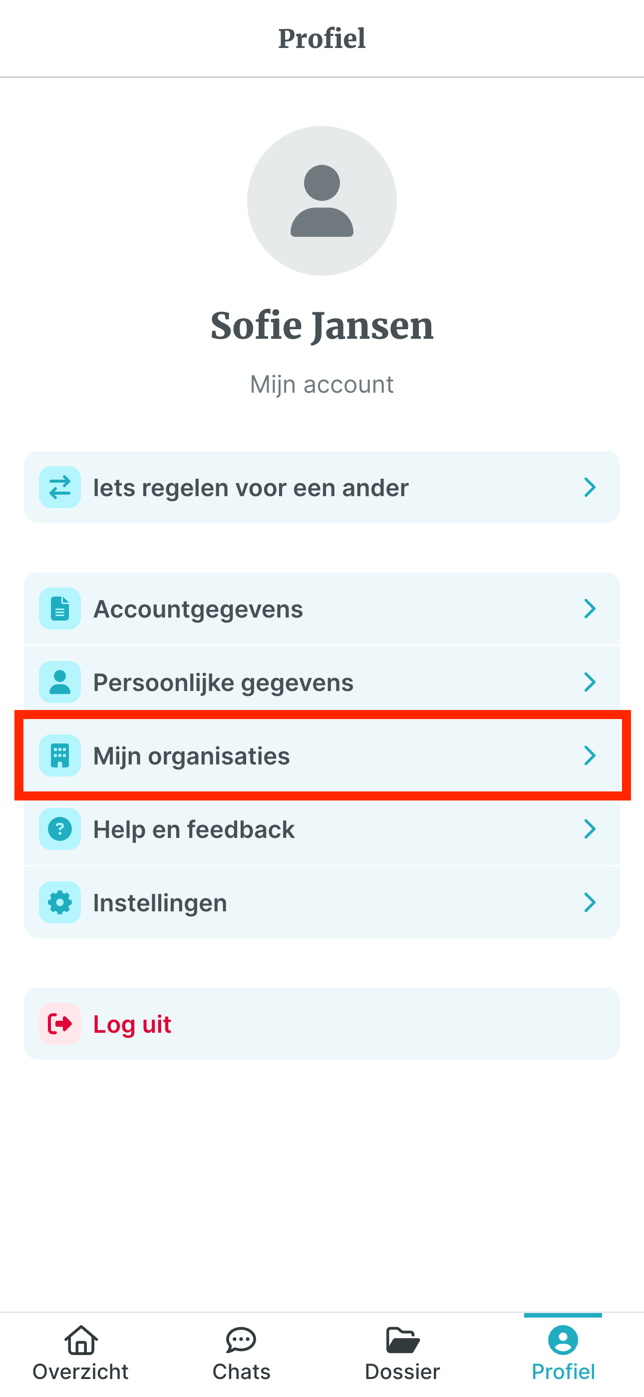 Stap 2: Klik op 'Mijn organisaties'