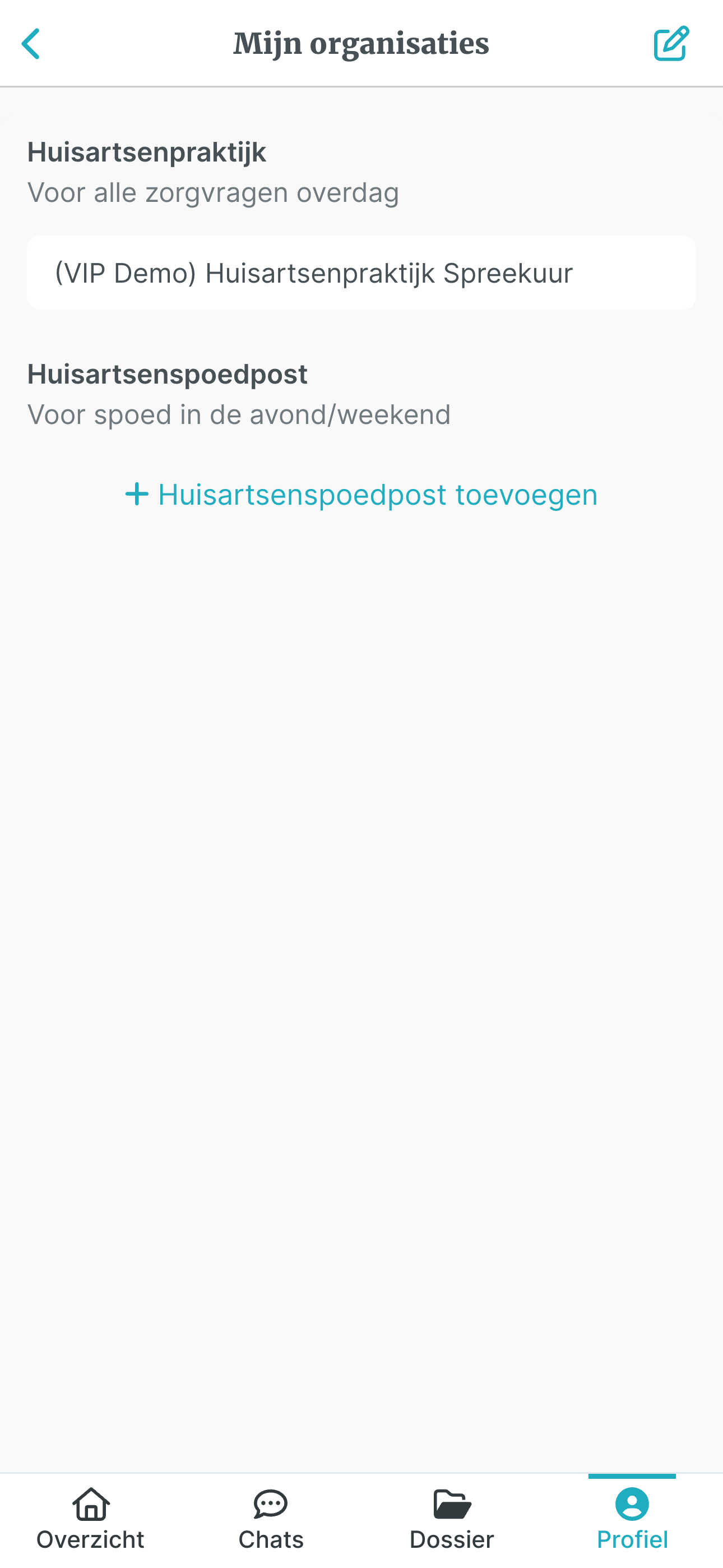 Jouw nieuwe huisartsenpraktijk is nu toegevoegd. Je kunt nu acties uitvoeren voor jouw nieuwe praktijk.