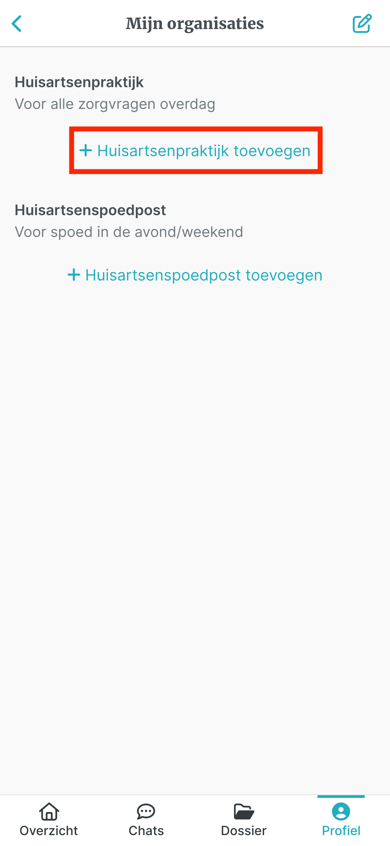 Stap 6: Klik op 'Huisartsenpraktijk toevoegen'